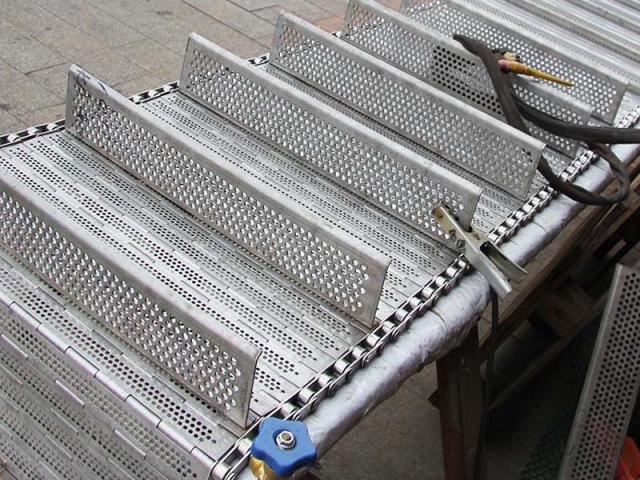 擋板式網(wǎng)帶由鏈條驅(qū)動的輸送網(wǎng)帶一般都由鏈條帶動小軸再帶動網(wǎng)帶運行。 網(wǎng)帶都采用軋牙串條、左右網(wǎng)條二根串,并大小網(wǎng)條連接而成,大網(wǎng)條內(nèi)穿進小軸,小軸二端穿入鏈條孔,從而達到鏈條驅(qū)動輸送網(wǎng)帶。鏈條網(wǎng)傳動平穩(wěn)、傳動力矩小。