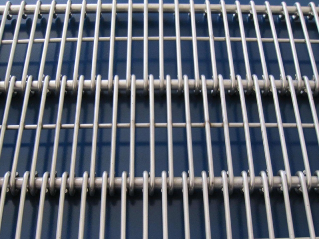 眼鏡網(wǎng)帶又稱線圈網(wǎng)帶,鏈輪驅(qū)動(dòng)、運(yùn)行穩(wěn)定、承載力強(qiáng)、輸送面平整、可運(yùn)送高速重物。表面平滑,適于不穩(wěn)定制品的輸送,開孔率大,通風(fēng)性、脫水性佳,容易洗凈。眼鏡網(wǎng)帶因孔大非常適合涂層操作流程,使之與傳輸帶盡可能減少接觸。