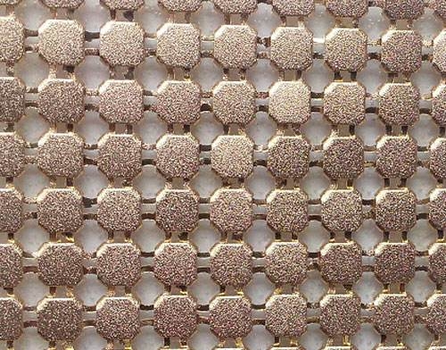 金屬網(wǎng)布采用鋁合金片材,經(jīng)機械編織而成,具有質(zhì)地柔軟,色澤艷麗、不退色、、不易污染、兼顧金屬和紡織品等優(yōu)點。這種新型金屬編織材料由于概念新穎、外觀華麗、垂度好,被迅速的選用于高級服裝面料、舞臺暮景裝飾,酒店、展廳,奢侈店等高檔產(chǎn)品和室內(nèi)裝飾。不同光線,不同觀察角度,其視覺效果豐富,高貴典雅。