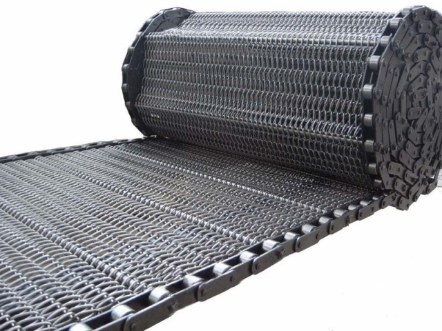 螺旋網(wǎng)帶:網(wǎng)面強硬耐用,不易變形,轉(zhuǎn)彎性能好,可以實現(xiàn)180度的轉(zhuǎn)彎,且運行平穩(wěn)。網(wǎng)面平整,可承受較重的的壓力和拉力,維修拆卸簡易方便??筛鶕?jù)客戶的需求在網(wǎng)帶兩邊加裝檔邊。
