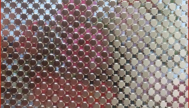 金屬網(wǎng)布采用鋁合金片材,經(jīng)機械編織而成,具有質(zhì)地柔軟,色澤艷麗、不退色、、不易污染、兼顧金屬和紡織品等優(yōu)點。這種新型金屬編織材料由于概念新穎、外觀華麗、垂度好,被迅速的選用于高級服裝面料、舞臺暮景裝飾,酒店、展廳,奢侈店等高檔產(chǎn)品和室內(nèi)裝飾。不同光線,不同觀察角度,其視覺效果豐富,高貴典雅。